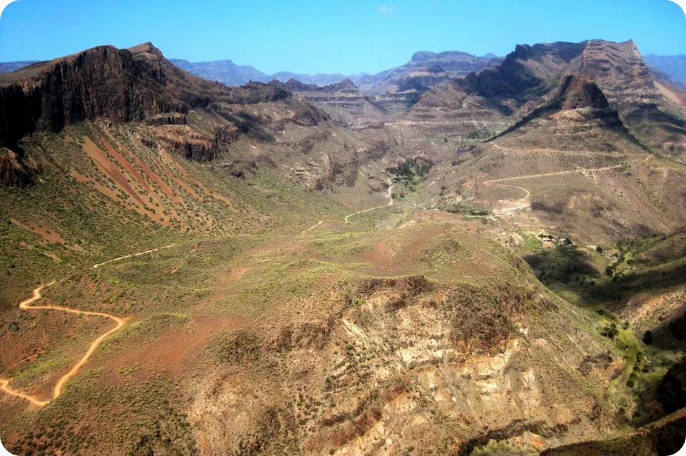 Gran Canaria, formidable à tous les niveaux. L’intérieur des terres, à la fois montagneux et désertique, domine sur la splendeur volcanique. Les sommets du Roque Nublo et du Pico de las Nieves atteignent presque les 2000 de hauteur. À ne surtout pas manquer : la vue panoramique sur l’impressionnant ravin verdoyant de Barranco de Fataga et la randonnée direction Caldera de Bandama, un ancien cratère.