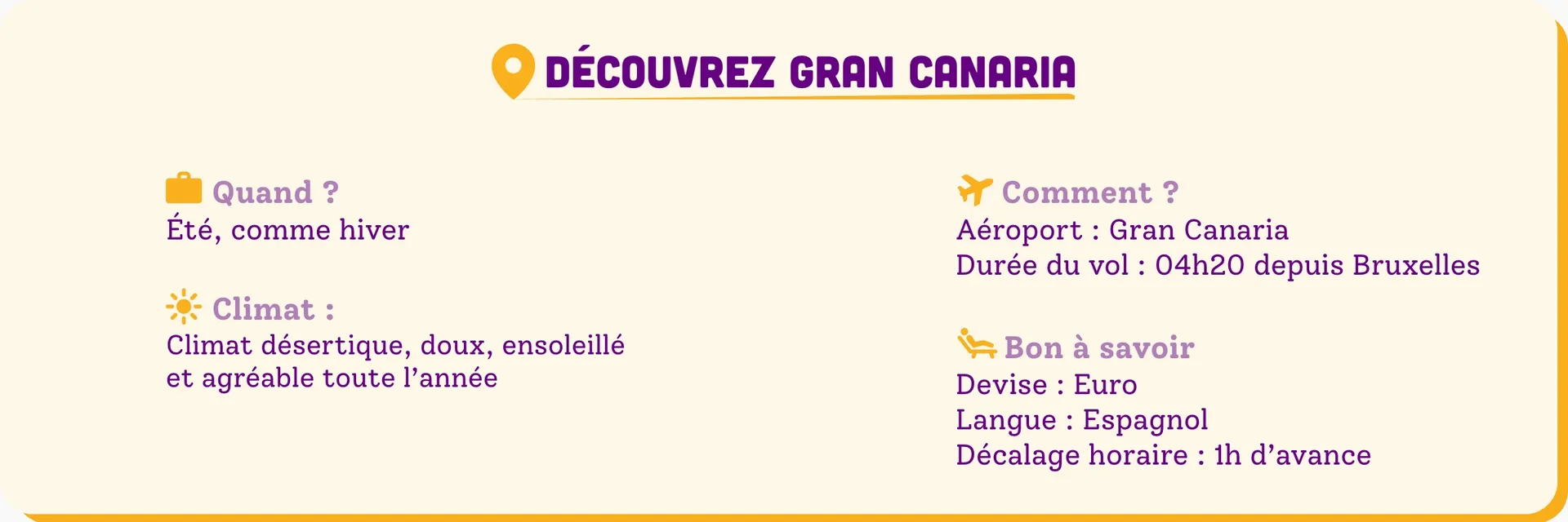 Le monde en un seul continent : des sommets éternellement enneigés au-dessus des terres verdoyantes aux plages de sable volcaniques et même, parfois, dorées. Une chose est sûre : votre séjour à Gran Canaria sera placé sous le signe de la découverte.