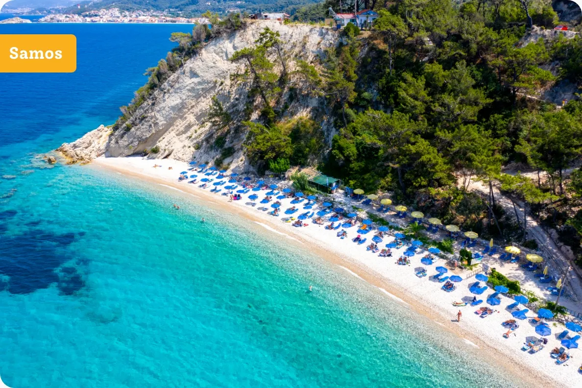 Samos est, très certainement, l’île la plus verte de Grèce. Pensez aux paysages vallonnés aux nombreux vignobles, aux forêts de pins parfumées et aux plages qui semblent sorties tout droit d'une carte postale. De la plage - encore sauvage - de Potami, avec sa cascade cachée, au sable doux de Psili Ammos, vous découvrirez la nature grecque dans toute sa splendeur.