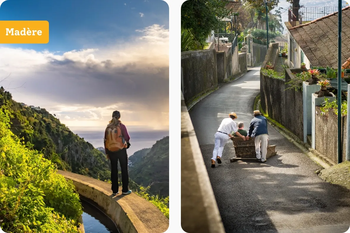 Conseil : Faites du ‘traîneau’ à Funchal ! Montez dans un panier traditionnel en osier et laissez-vous pousser à la vitesse de l'éclair par les habitants de la région pour dévaler la colline. Sans oublier le téléphérique pour profiter de vues panoramiques, c'est l'activité idéale pour faire passer vos vacances à la vitesse supérieure.