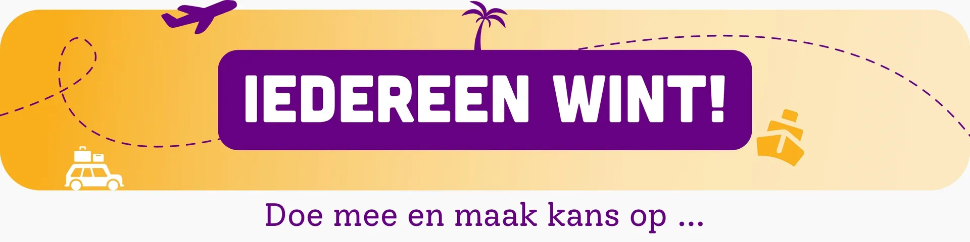 Voor alle deelnemers die geen hoofdprijs winnen, zal er na afloop van de wedstrijd een troostprijs voorzien worden onder de vorm van een Neckermann voucher ter waarde van € 39.95. Ook deze prijs kan niet verkocht worden en is niet terugbetaalbaar of inwisselbaar voor cash geld. Deze voucher kan ingewisseld worden op het volledige Neckermann aanbod met afreizen tot en met 30 september 2026 en dit zowel in onze Travel Shops als op www.neckermann.be. De minimale dossierwaarde voor het gebruik van deze kortingscode bedraagt € 500.