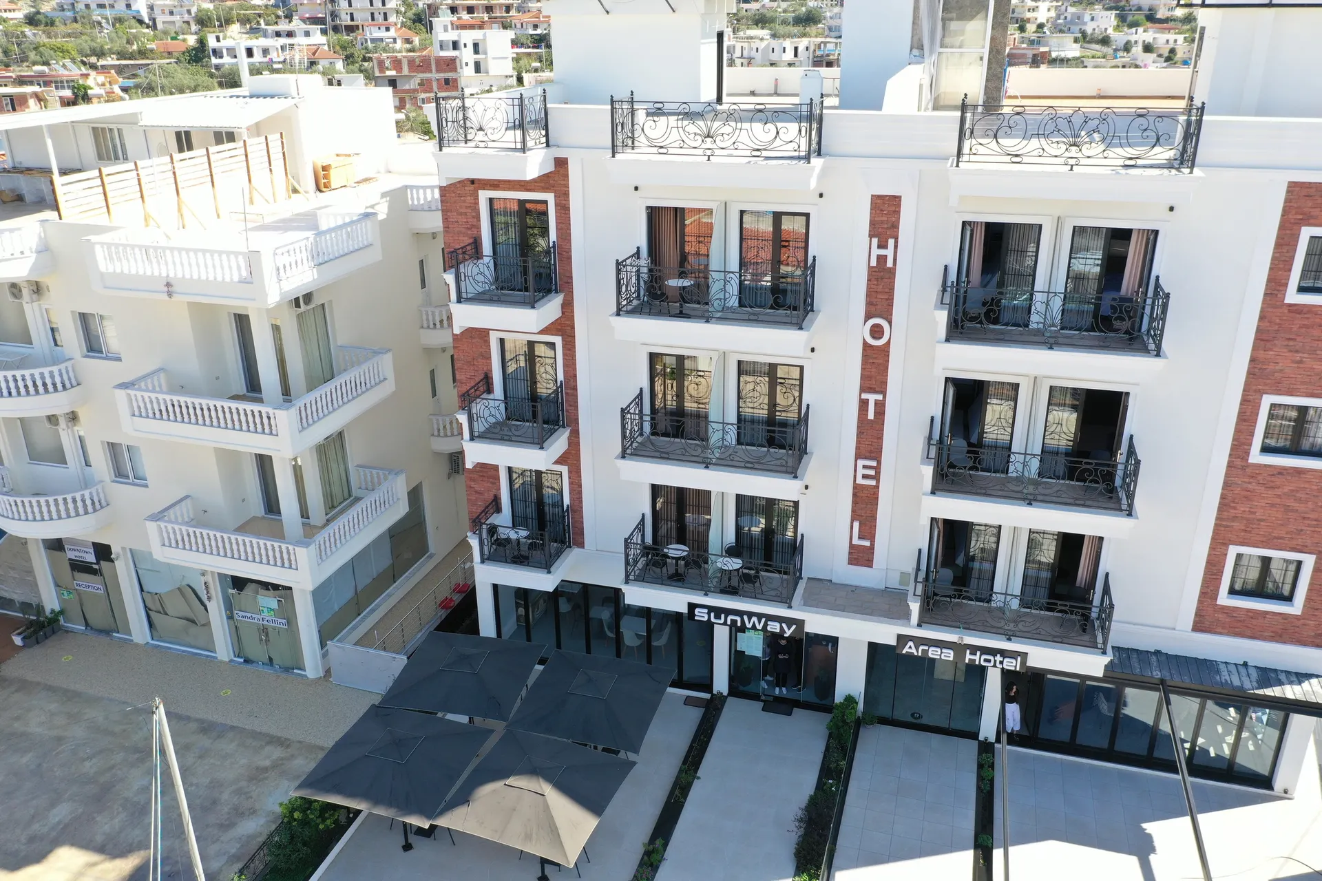 Algemene beschrijving:Het boutiquehotel Sunway Hotel Ksamil ligt op ca. 13 km van Saranda (Gjirokaster ongeveer 60 km, Himare ongeveer 62 km). Het dichtstbijzijnde strand, een kiezel-/rotsstrand, ligt op ongeveer 500 m van het hotel. Op het strand staan ligstoelen en parasols tegen betaling gereed. Een supermarkt is na ongeveer 80 m bereikbaar. De volgende bezienswaardigheden zijn bereikbaar vanaf het hotel: Lekursi Castle, Butrint National Archaeological Park, Blue Eye (ca. 32 km) en Gjirokastra Castle (ca. 65 km). Een autoverhuur service, een motorverhuur evenals een taxistandplaats en een bushalte op ongeveer 80 m afstand zorgen voor mobiliteit op vakantie. De luchthaven (TIA) is ongeveer 272 km van het hotel vandaan. Faciliteiten:Dit vier verdiepingen tellende hotel is in 2024 gedeeltelijk gerenoveerd en beschikt over in totaal 17 kamers. Daarnaast beschikt het hotel ook over een receptie (check in vanaf 15:00 uur, uitchecken tot 11:30 uur), een lobby, een lift, airconditioning, een kluisje (gratis) evenals een parkeerplaats (gratis). Het gastronomisch gedeelte omvat een restaurant. De hotelbar biedt gasten verfrissende drankjes in een gezellige atmosfeer. De hotelgasten kunnen gratis gebruik maken van Wifi. Kamerservice inclusief. Verzorging:Ontbijt (08:00 - 10:00 uur) in buffetvorm. Sport/Activiteiten:Op ongeveer 300 m afstand worden verschillende watersporten aangeboden (deels door lokale aanbieders en tegen betaling). Fietsverhuur. Aanvullende informatie:Het hotelpersoneel spreekt Grieks, Portugees, Engels en Frans. Geaccepteerde betalingsmiddelen: Euro/MasterCard en Visa. Dubbel Kamer (Met slaapbank):De comfortabele kamers (20 - 22 m²) zijn uitgerust met 2 eenpersoonsbedden of tweepersoonsbed, slaapbank als extra bed, extra bed, parket, balkon, verwarming (individueel verstelbar), internet (gratis), kluisje (gratis) en flatscreen kabel-tv, individueel verstelbare airco. Badkamer met douche. Handdoeken worden dagelijks verschoond. Double/Twin Kamer:De comfortabele kamers (18 m²) zijn uitgerust met 2 eenpersoonsbedden of tweepersoonsbed, parket, balkon, verwarming (individueel verstelbar), internet (gratis), kluisje (gratis) en flatscreen kabel-tv, individueel verstelbare airco. Badkamer met douche. Handdoeken worden dagelijks verschoond. DriePersoons Kamer:De comfortabele kamers (20 - 22 m²) zijn allemaal voorzien van 2 eenpersoonsbedden of tweepersoonsbed, parket, balkon, verwarming (individueel verstelbar), internet (gratis), kluisje (gratis) en flatscreen kabel-tv, individueel verstelbare airco. Badkamer met douche. Handdoeken worden dagelijks verschoond.