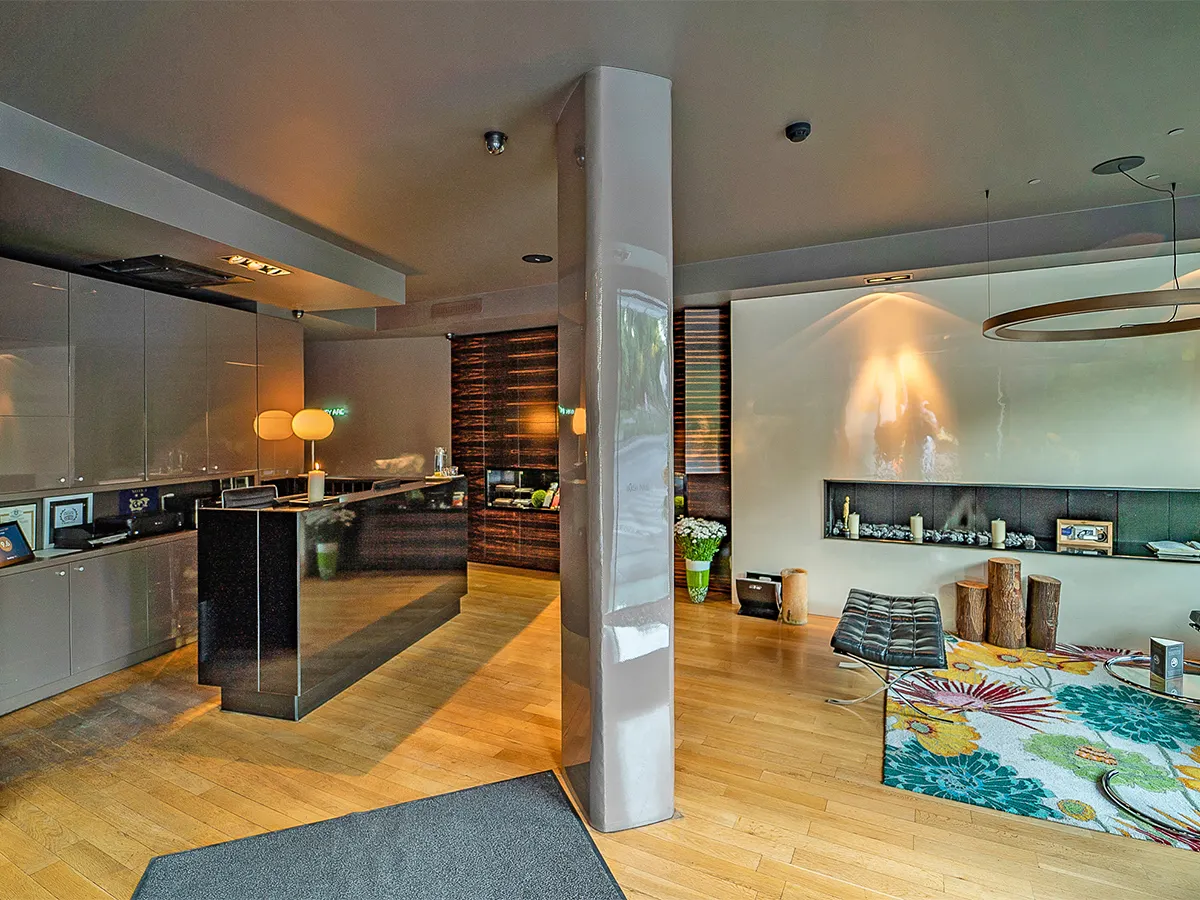 - Modern boutiquehotel, entree, receptie, WiFi in het hele hotel, bistro, roomservice, internethoek, kleine fitnessruimte, sauna. Landcategorie: 4 sterren, 37 kamers, 6 verdiepingen, lift.