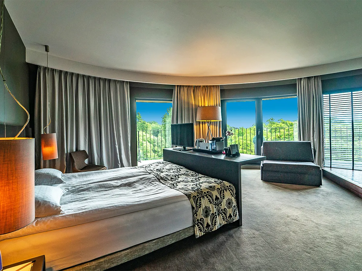 - Suites type B (SUB, ca. 37 m²), airconditioning, tweepersoonsbed, memory foam matrassen, ganzenkussens, Nespresso koffiezetapparaat, minibar (tegen betaling), tv (32 inch), telefoon, WiFi, kluis. Bad en douche, toilet Balkon. Max. 3V, te boeken voor alleengebruik (SES)