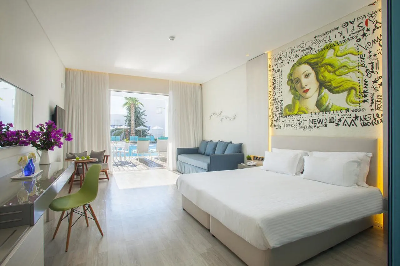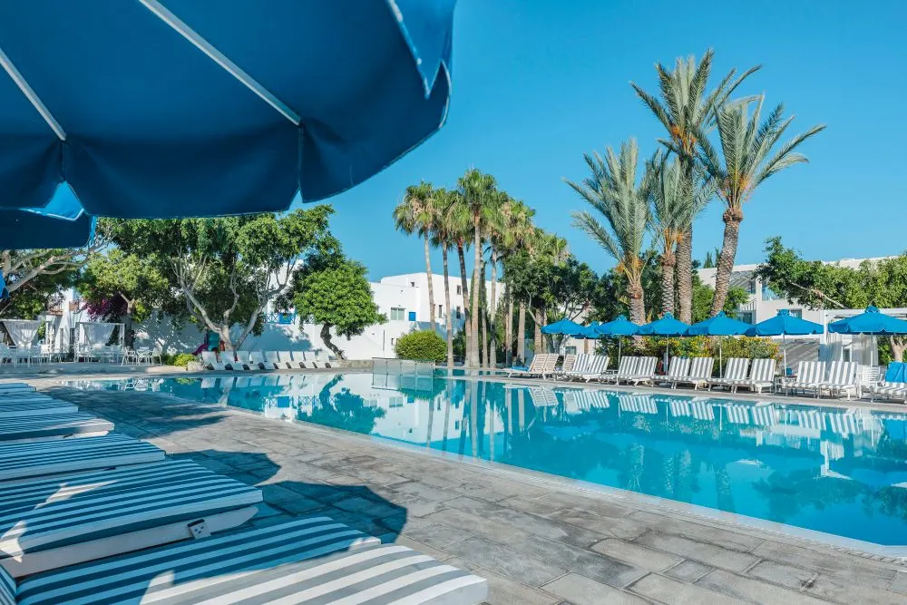Het hotel ligt op slechts 150 m van een strand verwijderd, centraal in Geroskipou.