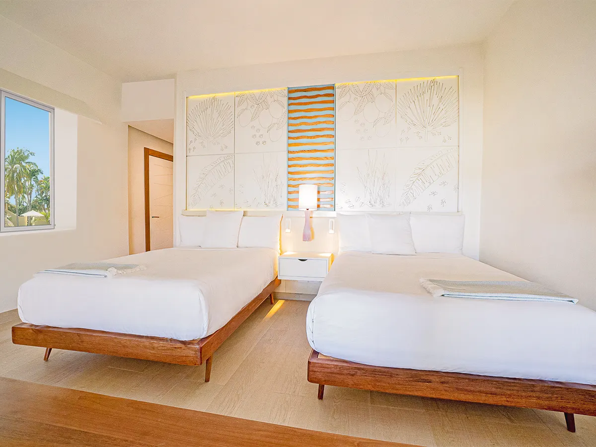 - Juniorsuites (JS, ca. 45 m²), woonruimte, airconditioning, plafondventilator, minibar (dagelijkse bevoorrading), koffiezetapparaat, tv, telefoon, WiFi, kluis. Bad/douche, toilet, haardroger. Balkon. Max. 2V+2K, juniorsuites voor alleengebruik te boeken (JSE)<br>Familie-suites (FZ, ca. 82 qm, vanaf dem 01.11.24) 2 aparte slaapkamers, aircon., plafondventilator, minibar (dagel. aanvulling), koffiezetapparaat, tv, telefoon, WiFi, kluis. <br>Extra Voorzieningen zoals privé check-in, 24-uur.-roomservice, ap. strandgedeelte met Bali-bedden en conciërge-service in de beachclub.