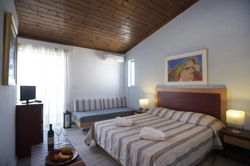 Het hotel heeft een rare balans door haar budget-gevoel op een top locatie. Wij vonden het een prima hotel omdat wij vooral niet veel tijd doorbrachten op de kamer en rondom het hotel. We waren veel weg dus voor alleen in de avond te komen douchen, slapen en ‘s ochtends ontbijten was het helemaal prima. Ben je van plan om vooral veel van je vakantie tijd te willen besteden bij het hotel, zoek dan zeker een ander hotel. Het hotel voelt aan als een klein traditioneel dorpje met gekleurde huisjes en balkons. Omringt met prachtige kleurrijke bloemen planten bomen en cactussen. Inclusief een prima zwembad gebied dat uitkijkt over de zee. Het hotel heeft de perfecte ligging, aan het strand, tegenover een supermarkt en overal binnen een bereik van 12 minuten lopen liggen top restaurantjes en tavernes. Echter, de kamers en het ontbijt waren erg budget. De kamers zijn enigszins verouderd. Wel was de badkamer helemaal nieuw, dat was top. Verwacht niet teveel van de kamers: de muren zijn kaal en het meubilair is van wat ouder houten. Verder moet je voor airco 10€ per dag betalen. Het ontbijt is erg minimaal en altijd hetzelfde, voor de eerste 3 dagen was het prima, daarna begon het te vervelen. Verder was het zwembad heel schoon, genoeg bedden beschikbaar (we gingen in de laatste week van Augustus) en je loopt zo vanuit het zwembad naar de zee.