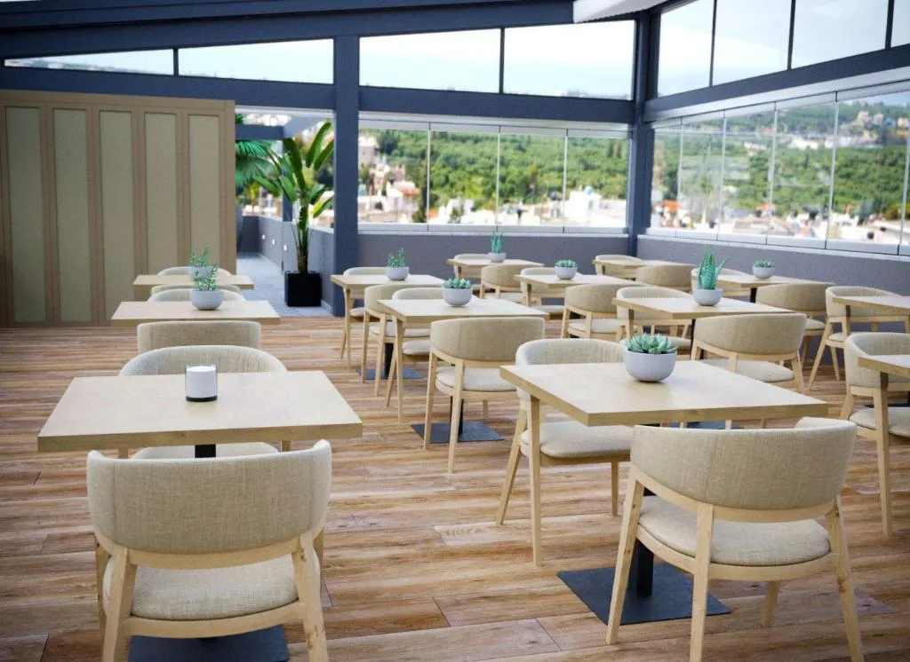 Positief: Goed ontbijt, vriendelijk personeel. Negatief: Het avond eten was niet lekker en veel te weinig variatie.Ook is de pizza, pannekoeken enz... gewoon koud omdat ze geen warmhoudplaten hebben. Het poetsen was verschrikkelijk. Er lag een beetje zand omdat we op het strand waren geweest, die heeft er gelegen tot we naar huis gingen. De handdoeken worden niet alle dagen verwisseld maar gewoon gedroogd. Ook stonk het op de kamer, bleek het koffieapparaat te zijn wat niet geledigd was. Hebben alles doorgegeven toen hebben ze het wel opgelost. Er is ook geen busvervoer in de buurt. Wij hebben een auto voor de hele week gehuurd. Is geen luxe, want anders wandel je 3 km bergop in 31 graden.