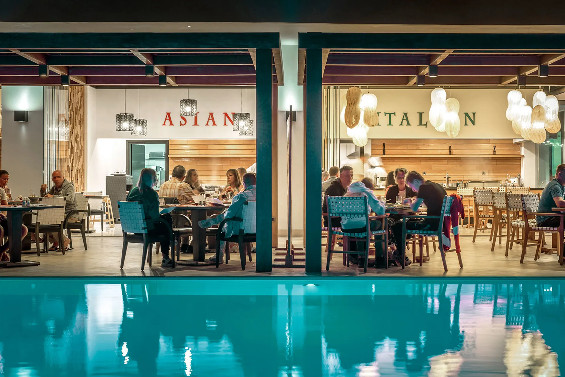 Het hotel was goed maar wat ons betreft niet zijn 5 sterren waard. Onze kamer was heel klein, sfeerloos en verouderd. De airco maakte veel herrie maar deed het niet goed en stond recht op het bed gericht met als gevolg een verkoudheid. Ook het bed was veel te hard en de kussens te slap. We hadden een kamer met een privé zwembad geboekt, maar dat zou de naam zwembad niet mogen hebben. Het badje was ongeveer 2,5 bij 3 meter en zwemmen was daarin dus niet mogelijk. Het water was ook nog eens steenkoud, wat ook geldt voor het grote zwembad. Er zwommen dus ook niet heel veel mensen in gedurende de week dat wij er waren en ook wij zijn er maar 1x in gegaan. Het aanbod van eten van het buffet was meer dan voldoende en smaakte allemaal heel erg goed maar was wel altijd lauw tot koud. Dit hoeft niet want er zijn goede mogelijkheden om eten goed warm te houden. Het hotel heeft naast het buffetrestaurant nog 4 thema restaurants. Hiervoor moet je vooraf reserveren en ieder thema restaurant mag je tijdens je verblijf 1x bezoeken. De restaurants zaten alleen allemaal al voor de hele week vol dus konden wij daar niet terecht. 7 dagen het buffet wilden we niet dus hebben we buiten het hotel in restaurants gegeten. Je hebt echter wel betaald om er gebruik van te kunnen maken dus dat is wat ons betreft niet goed geregeld.