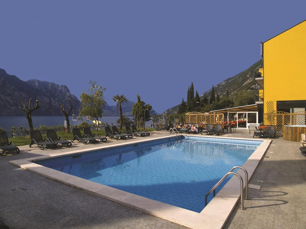 Het hotel ligt direct aan het strand, centraal in Malcesine.