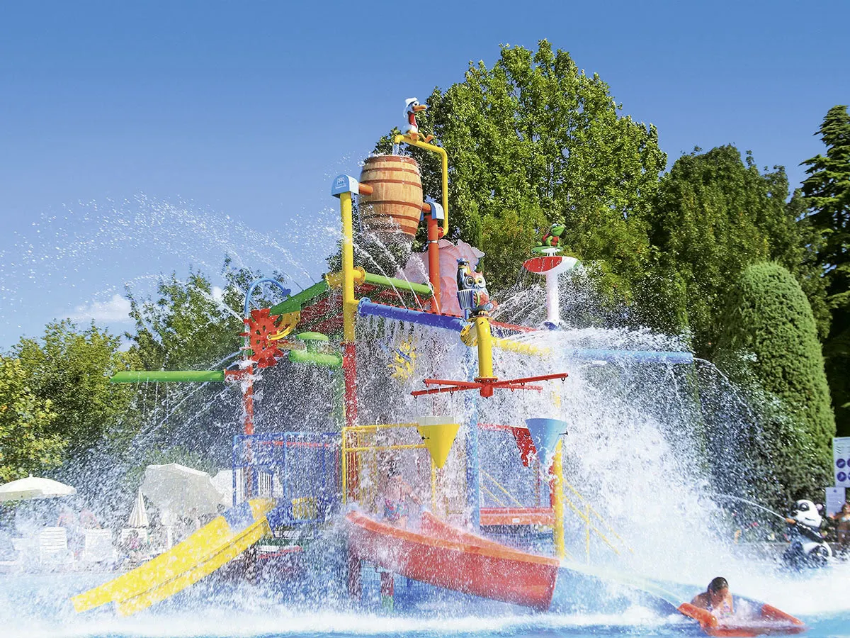 - Happy Camp-receptie, WiFi (in de openbare ruimtes inclusief), 4 restaurants, pizzeria, snackbar, supermarkt. In het ruime zwembadlandschap met 8 zwembaden (ca. april-september), waterglijbanen, kinderbereiken, terrassen en ligweide (ligbedden en parasols op basis van beschikbaarheid, tegen betaling). Landscategorie 5 sterren.