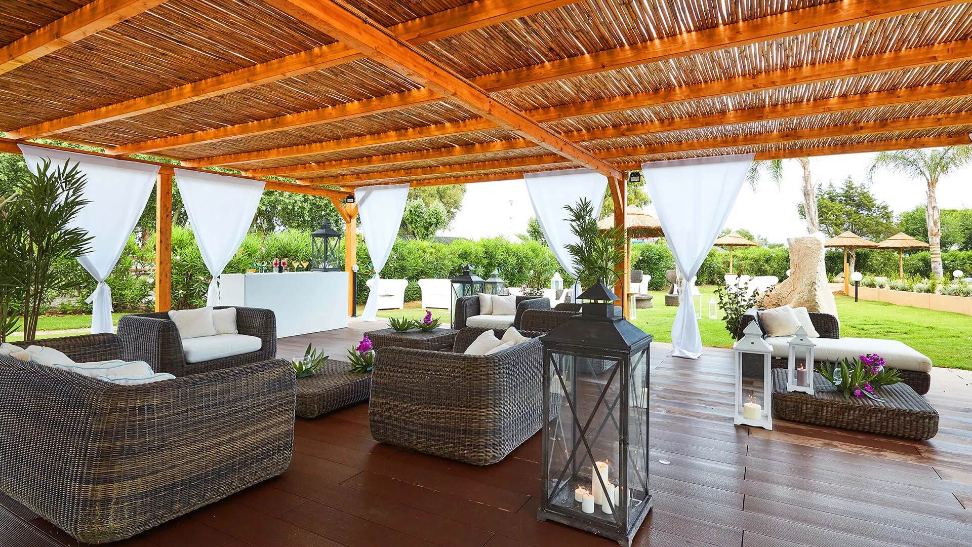 Gelegen op de zuidoostelijke punt van Sardinië, in de prachtige halve maan van het beschermde mariene gebied, dat zich uitstrekt van Villasimius tot Capo Carbonara. Het complex ligt op 1 km van het centrum van Villasimius en de jachthaven. Het is 51, 6 km naar Cagliari en het resort is gemakkelijk bereikbaar vanaf Cagliari Airport (55 km) en de belangrijkste havens. Dit elegante, moderne complex is verdeeld over 43 hectare en beschikt over bungalows en appartementen die harmonieus opgaan in de weelderige vegetatie van de tuinen, die zelf zachtjes overgaat in wit zand en zee. Dit gezinsvriendelijke strandresort beschikt in totaal over 870 kamers. De faciliteiten die de gasten worden aangeboden, omvatten een lobby met een 24-uursreceptie en een check-out service, een wisselkantoor, een garderobe en een kiosk. Er is een kapsalon, een auditorium, een speelkamer en een kinderclub. Gasten hebben een bar, een disco en eetgelegenheden tot hun beschikking, evenals conferentiefaciliteiten en internettoegang (tegen betaling). Ze kunnen ook gebruikmaken van de wasservice (tegen betaling) en parkeergelegenheid. Het is ook mogelijk om fietsen te huren op het terrein (tegen een toeslag). Ter plaatse te betalen: toeristenbelasting. DENK ERAAN: download onze APP VOIhotels voor je aankomstdatum om in te checken en wachtrijen bij de receptie te voorkomen.
