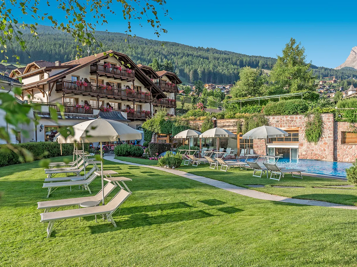 - Een van de toonaangevende hotels in Val Gardena en erg populair bij Duitse gasten, hotellobby met receptie, WiFi (inclusief), restaurant, bar met zonneterras, salon. Ligweide (ligbedden, parasols). Parkeerplaatsen. Ondergrondse parkeergarage (tegen betaling voor personenauto's, voor cabriolets en motorfietsen inclusief). Landcategorie: 4 sterren, 38 kamers, 4 verdiepingen, lift.