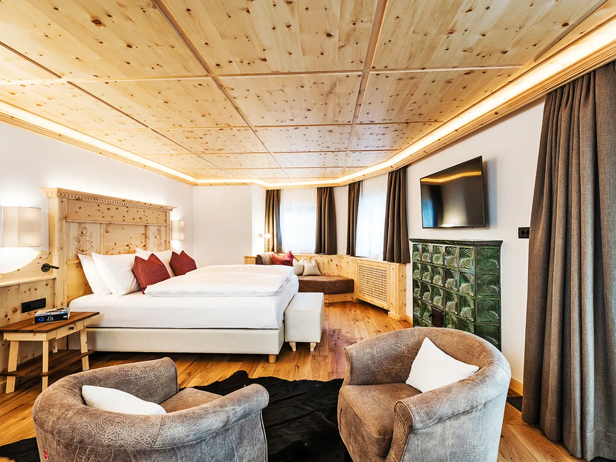 - Tweepersoonskamer (DZ, ca. 22 m²), tv, WiFi (inclusief), kluis, minibar (tegen betaling). Bad/douche, toilet, haardroger, wellnesstas (huurbadjassen, -sauna doeken, slippers. Grotendeels met balkon. <br>Superior-kamer (DSP, ca. 31 m²), tv, WiFi (inclusief), kluis, minibar (tegen betaling). Bad/douche, toilet, haardroger, wellnesstas (huurbadjassen, -sauna doeken, slippers).
