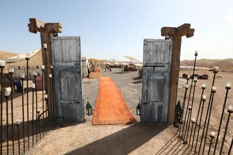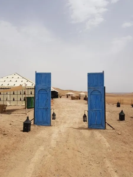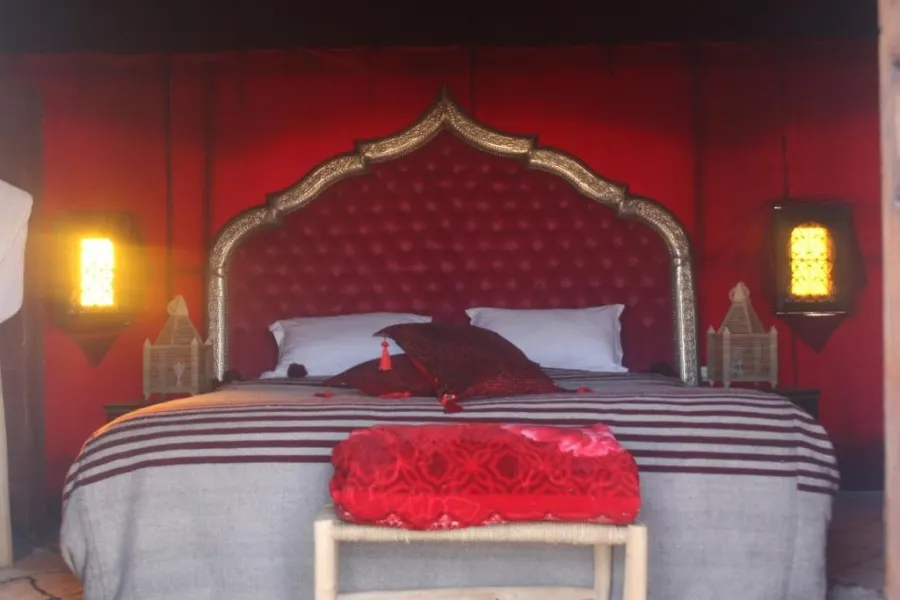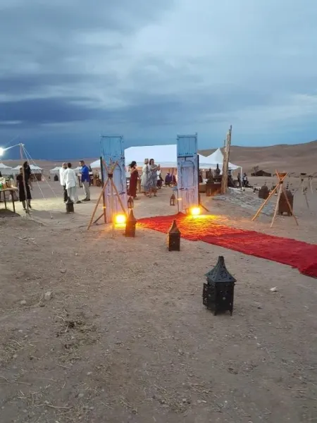 The 5 star hotel Yes we Camp's Agafay is around 34 km from the city centre. There is a shuttle between the hotel and the airport (for a fee). The GPS-verified 5 star hotel is equipped with Wi-Fi, internet access, parking spaces as well as a TV lounge with satellite TV. In the outdoor area of the property you will find a heated pool that is open seasonally. The energy supply is 240 Volts. In addition, the hotel sells tickets for excursions. For guests on their honeymoon, the hotel has special offers such as personalised rooms/articles, rooms with a particularly romantic location and view, special honeymoon packages, romantic dishes in the restaurant, a basket of fruit or flowers in the room. Due to its barrier-free facilities , such as barrier-free entrances and wheelchair accessible rooms, the hotel is also suitable for wheelchair users.