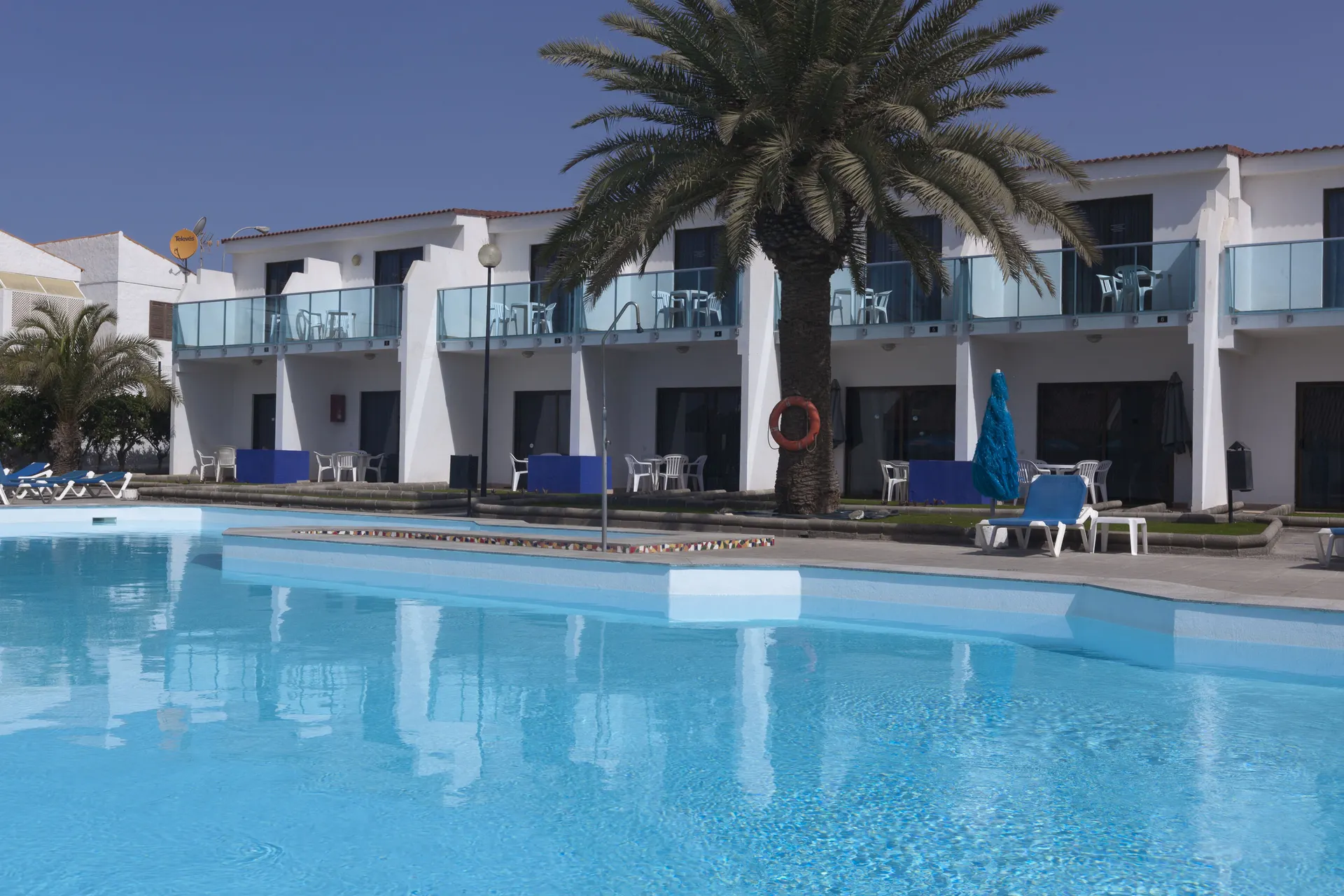 Dit bungalowcomplex ligt bij een rustig gedeelte van Playa del Inglés, slechts 200 m van het strand. De locatie is ideaal, de winkelcentra Tropical (300 m) en San Augustin (800 m) liggen vlakbij. Er zijn ook gunstige aansluitingen op het openbaar vervoer naar de rest van het eiland. De bushalte ligt op slechts enkele meters van het complex. De internationale luchthaven van Gran Canaria ligt op ongeveer 20 km afstand.