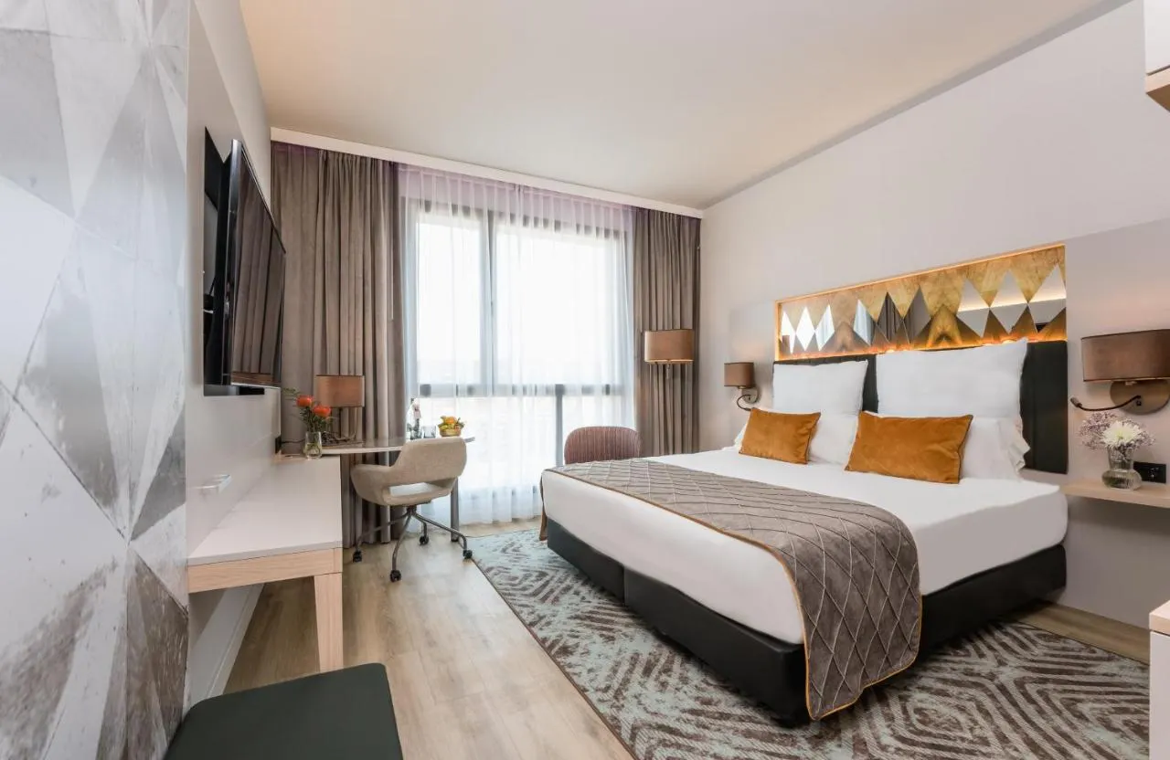 Het Leonardo Royal Hotel Barcelona Fira is een elegante en comfortabele optie voor zowel vakantiegangers als zakenreizigers. Het is ideaal gelegen in de buurt van de Fira Barcelona Gran Via voor degenen die de stad bezoeken voor een conferentie of vergadering; bovendien is het goed verbonden met de rest van de stad per metro. Het hotel is uitgerust met airconditioning en verwarming, en gasten kunnen genieten van een uitgebreid ontbijtbuffet, een maaltijd in het restaurant of drankjes aan de bar. Op het dak biedt het oneindige zwembad een adembenemend uitzicht op de stad.