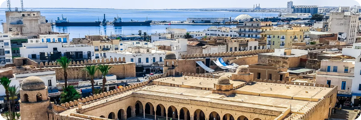 In het oosten van Tunesië ligt de bekende badplaats Sousse. Wat je mag verwachten van een vakantie Sousse? Ontspan samen met de locals op het strand met een fris drankje en een heerlijk gerecht, scoor de meest originele souvenirs in de Soeks of slenter door de stad die gekenmerkt wordt door witte huisjes met typische blauwe deuren en ramen. Als derde grootste stad van Tunesië is er altijd iets te beleven in Sousse. Ontdek ons ruim aanbod hotels in Sousse, Tunesië en boek je favoriete verblijf.